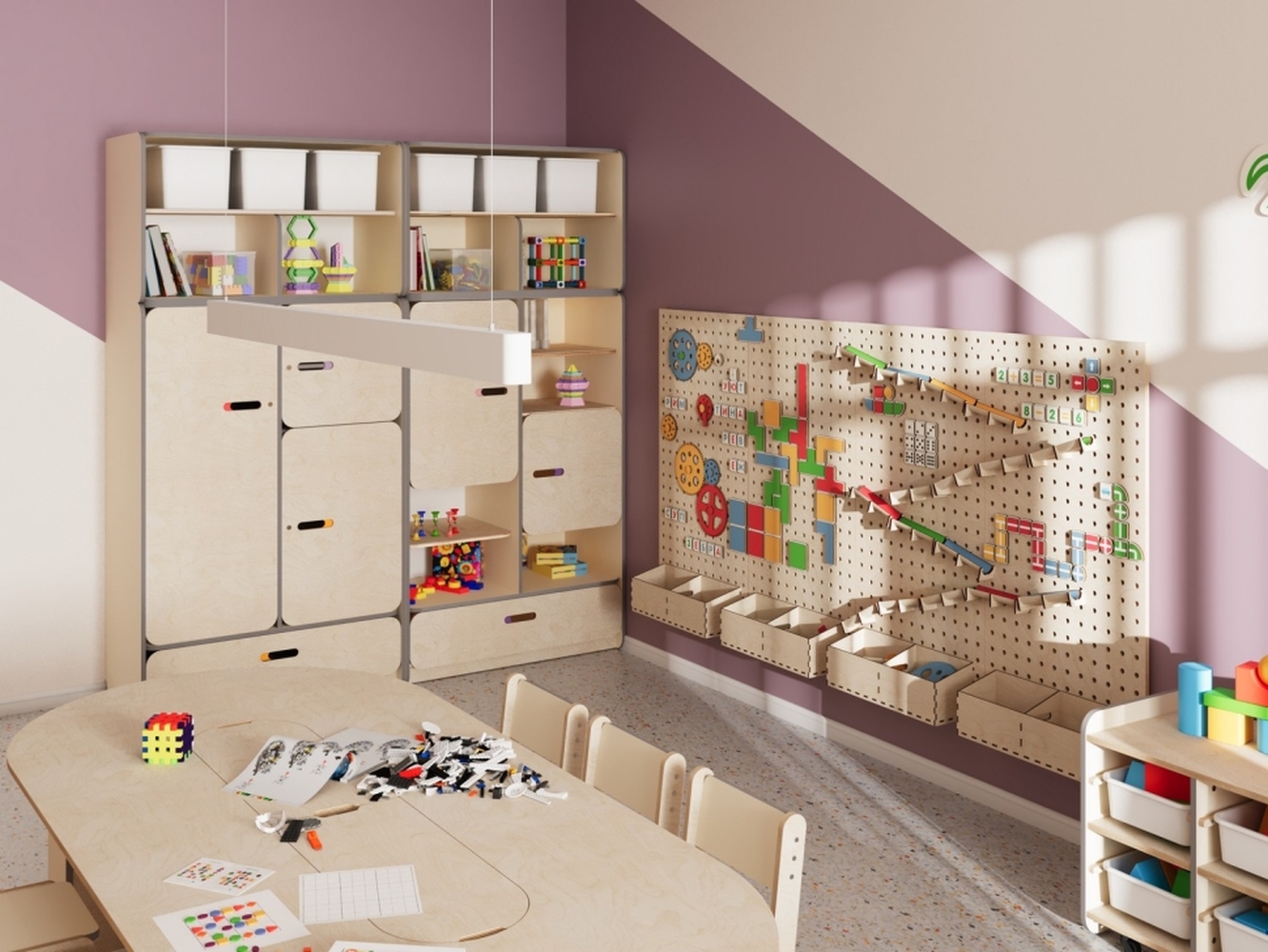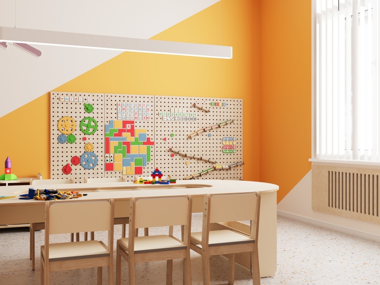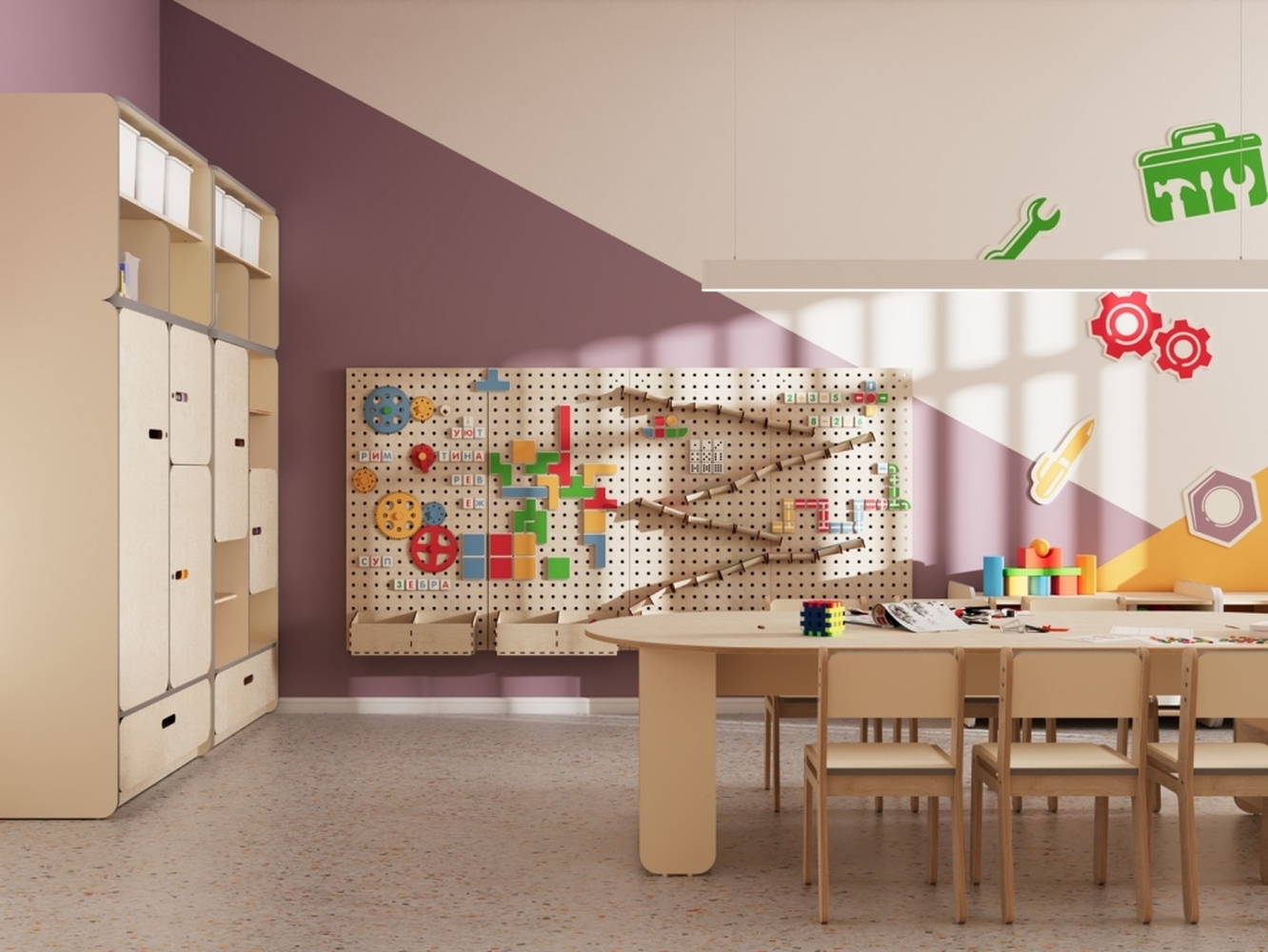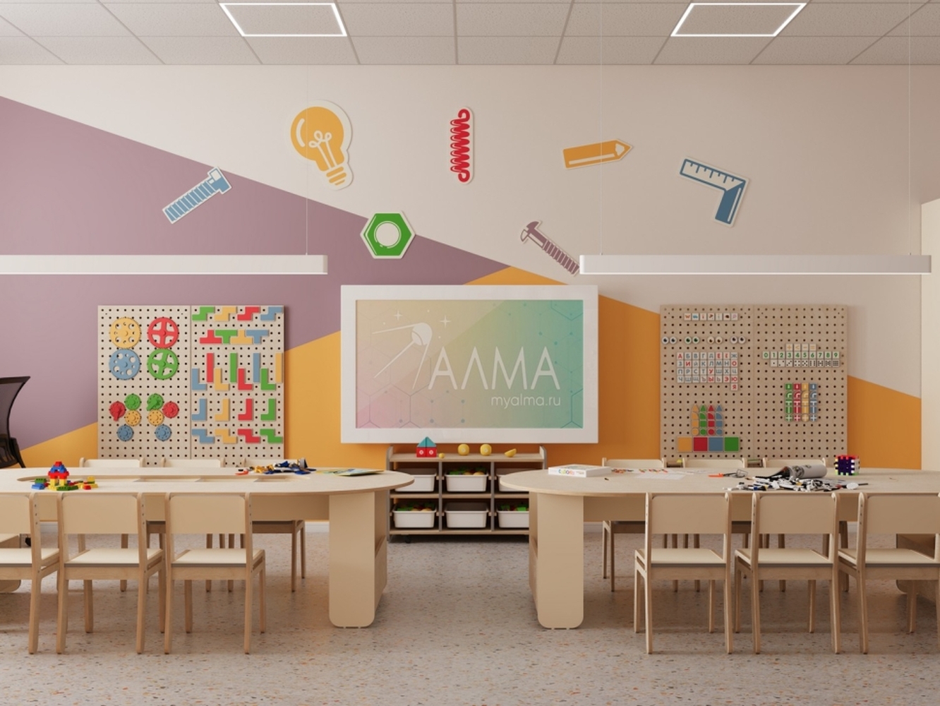 - Единое стильное оформление. Мебель и декоративные элементы выполнены в едином визуальном стиле. Это создает организованную, приятную и мотивирующую среду для обучения и творчества.