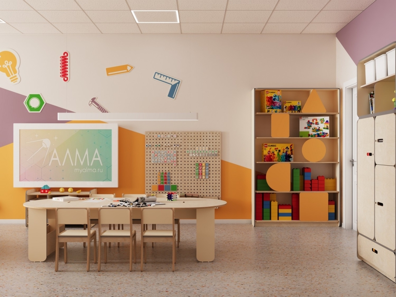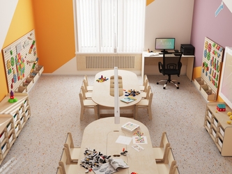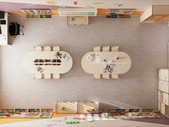 - Полное оснащение. В состав входят: мебель для педагогов и детей, модули хранения, интерактивное оборудование, разнообразные обучающие и дидактические материалы. Все компоненты подобраны с учетом возрастных особенностей и педагогических задач.