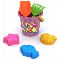 Набор песочный №252, ведро среднее с наклейкой, ситечко, совок, грабельки, формочки