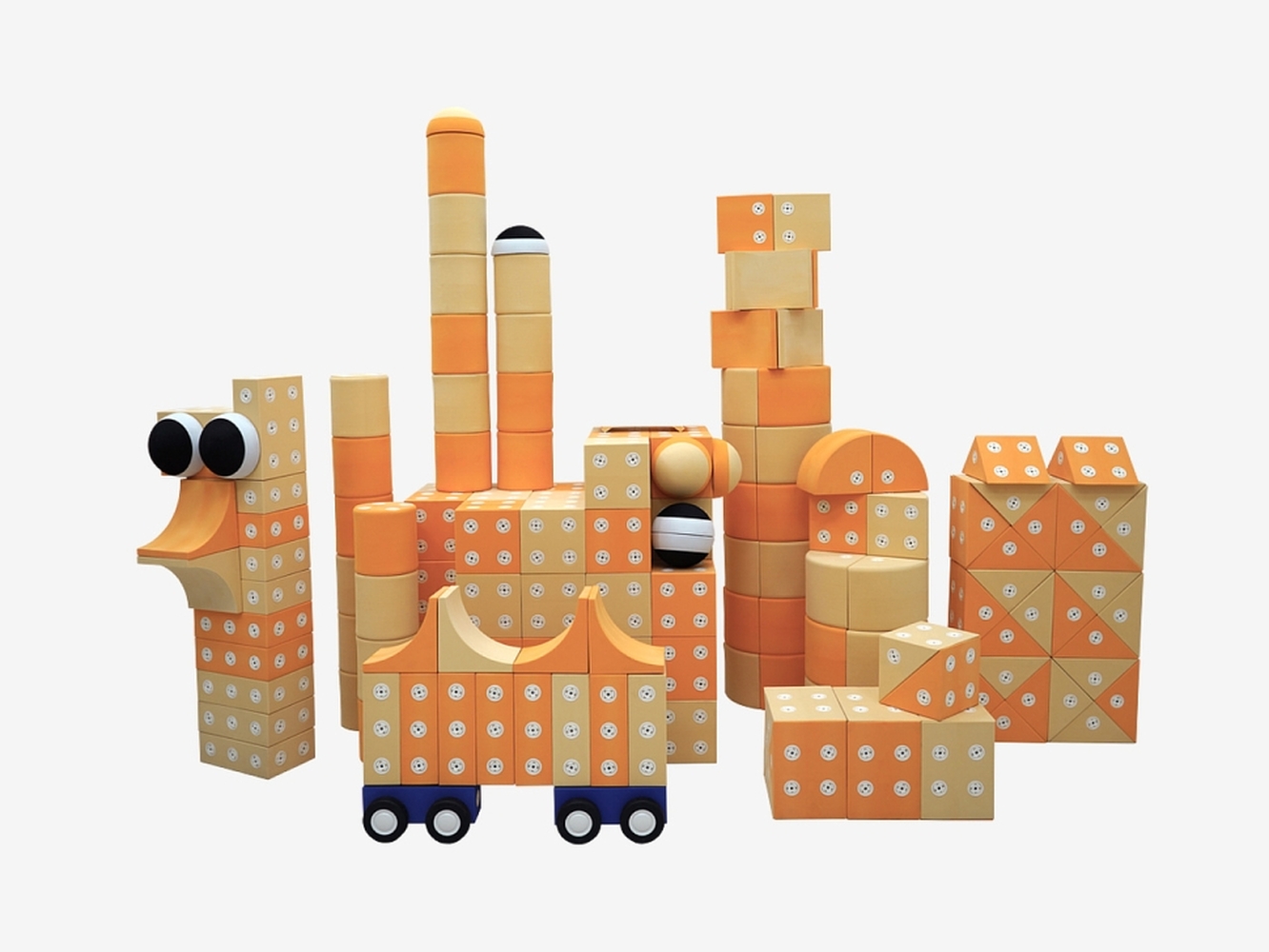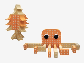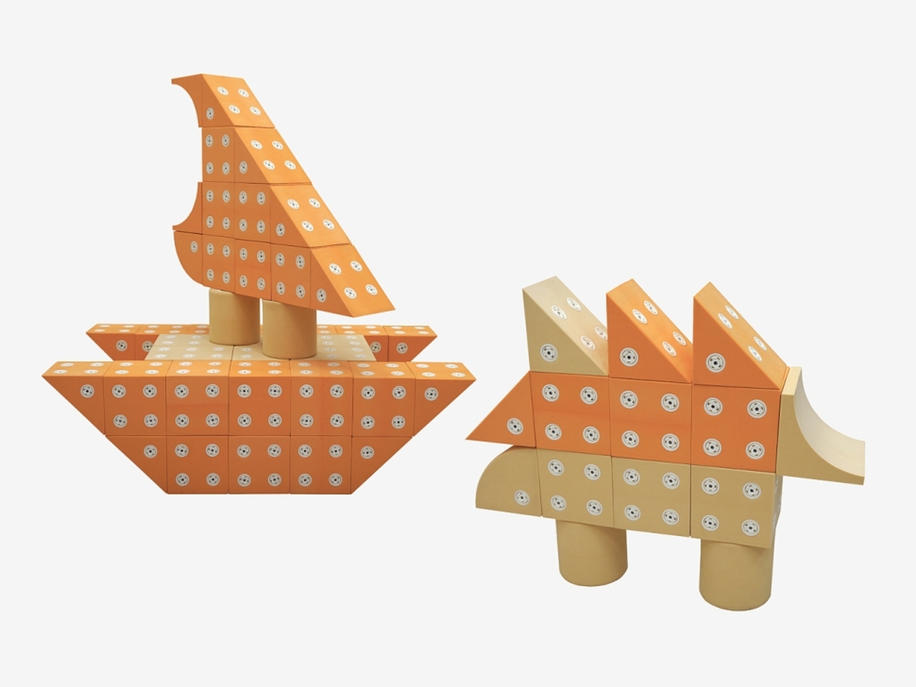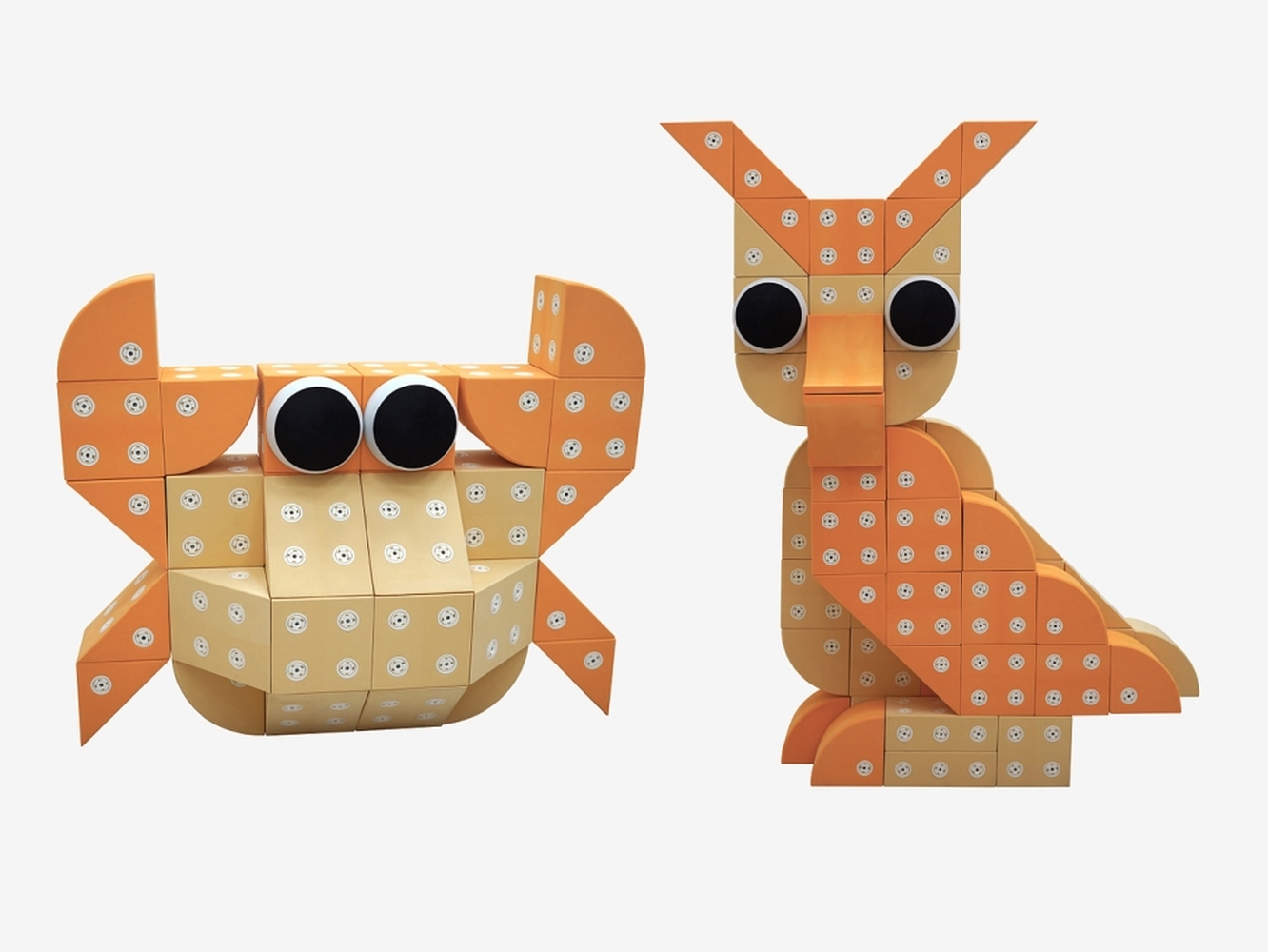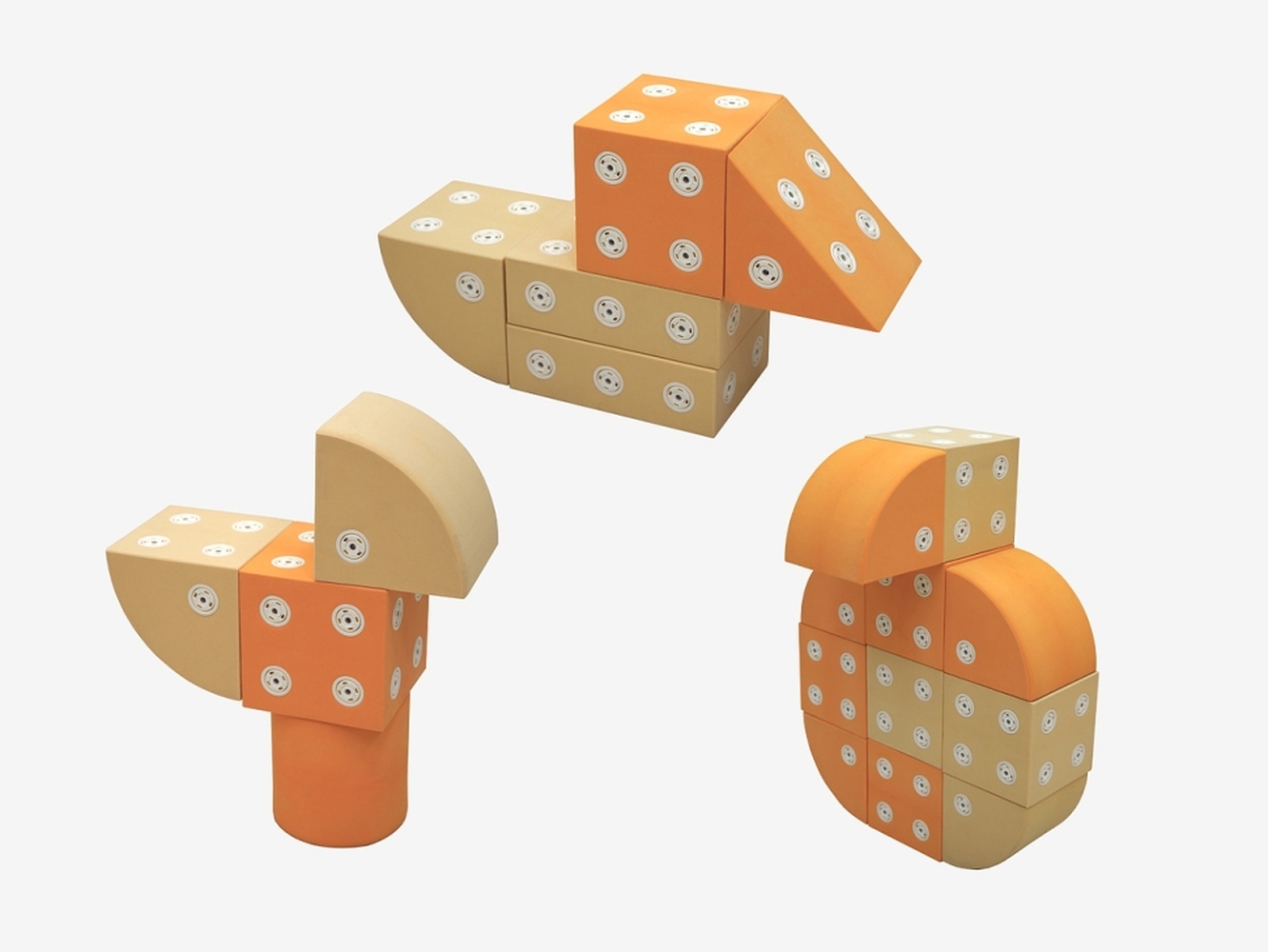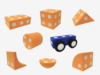 Напольный конструктор выполнен в двух цветах.Крупные детали в виде геометрических фигур выполнены из мягкого гипоаллергенного материала. Крепления имеет магнитную систему для быстрой и простой стыковки-расстыковки деталей. У каждой детали есть от 4 до 24 вариантов магнитной стыковки, что дает полную свободу для творчества.