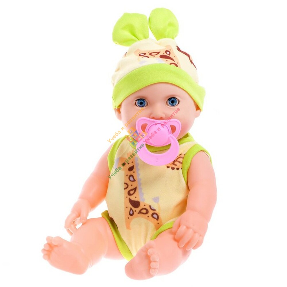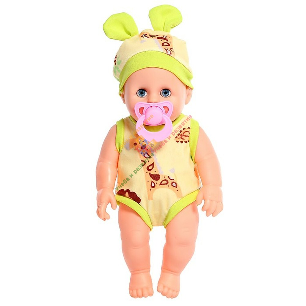 Для работы игрушки нужны 3 батарейки типа LR44 (V13GA, AG13, LR1154), которые входят в комплект. Высота пупса: 30 см. Одежда снимается.