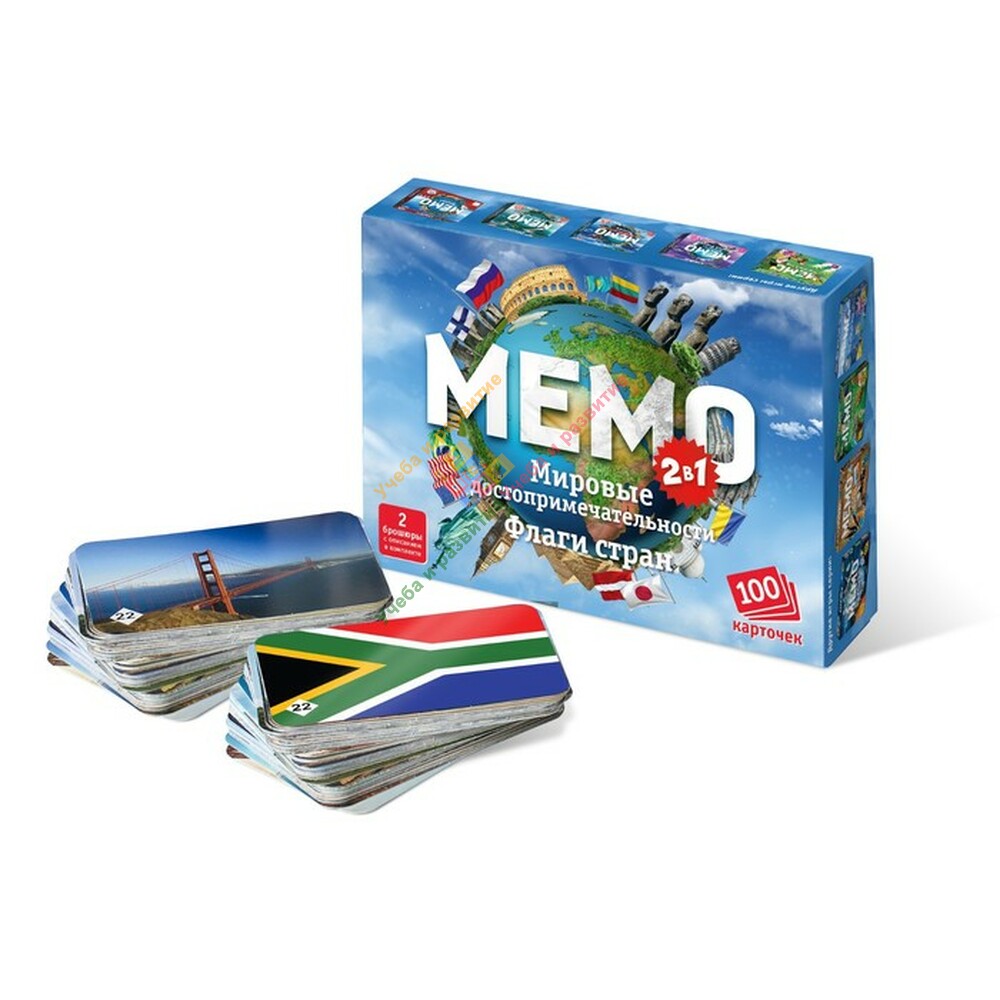 Товар: Настольная игра Мемо 2в1 «Мировые достопримечательности» и «Флаги стран», 100 карт