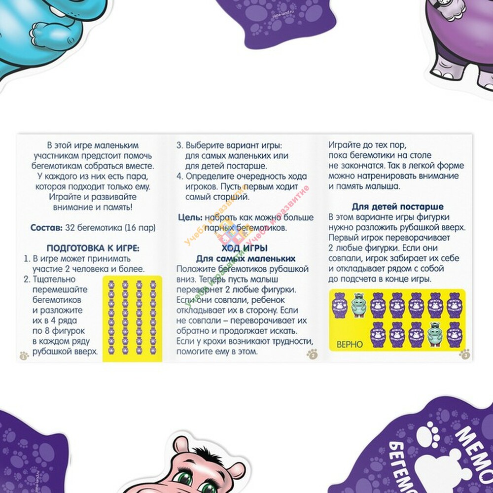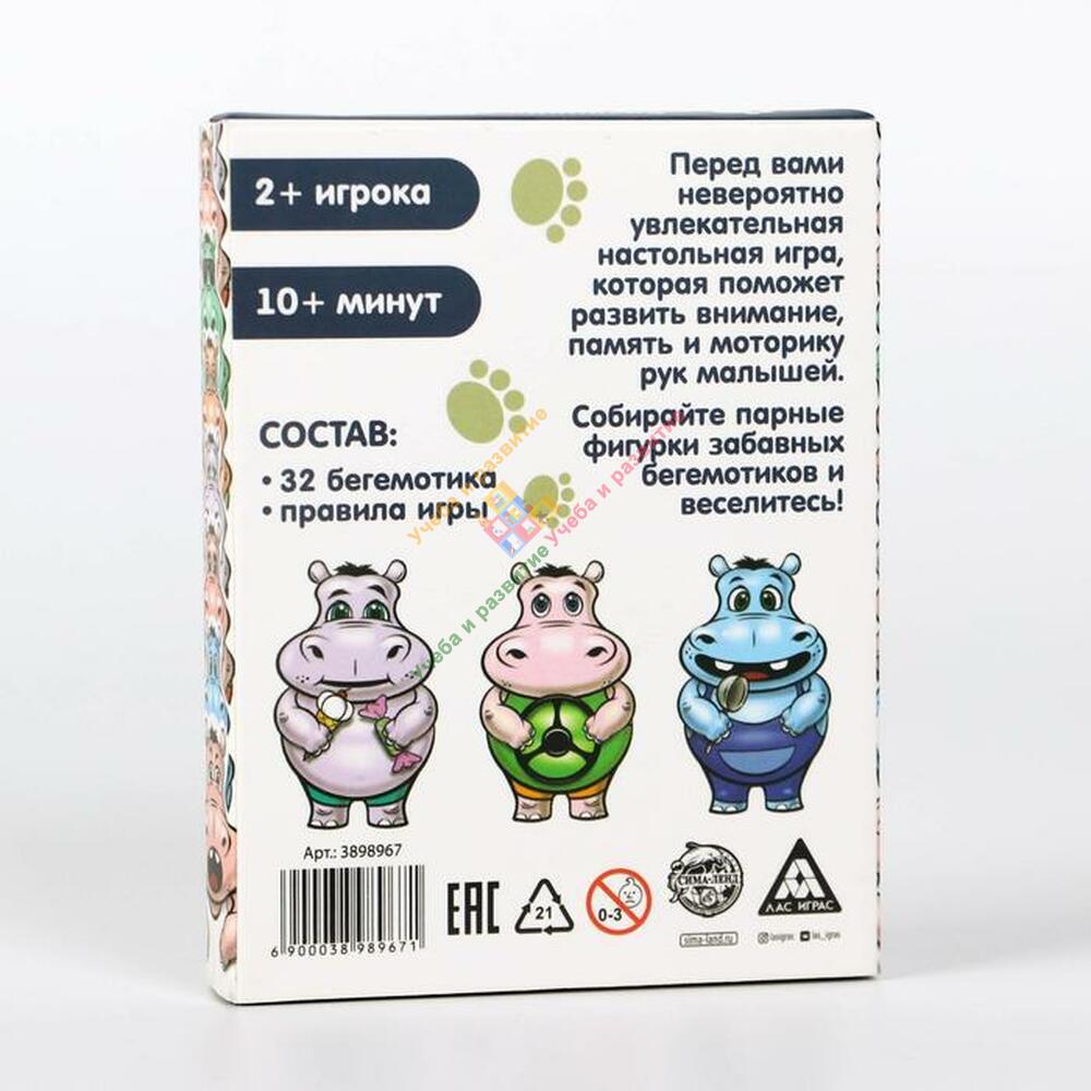 Перед вами увлекательная настольная игра, которая поможет развить внимание, память и моторику рук малышей. В этом помогут забавные бегемотики.
