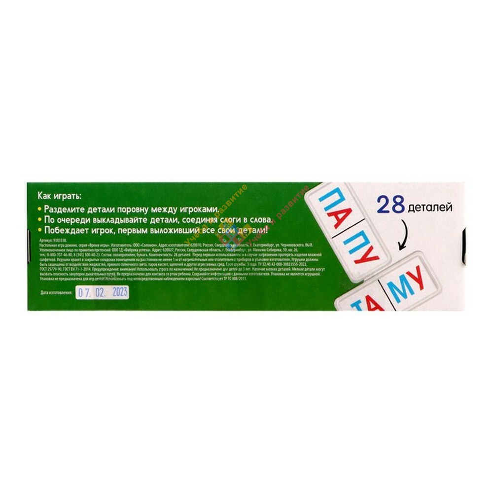 Домино «Читаем по Слогам », пластик, 28 деталей