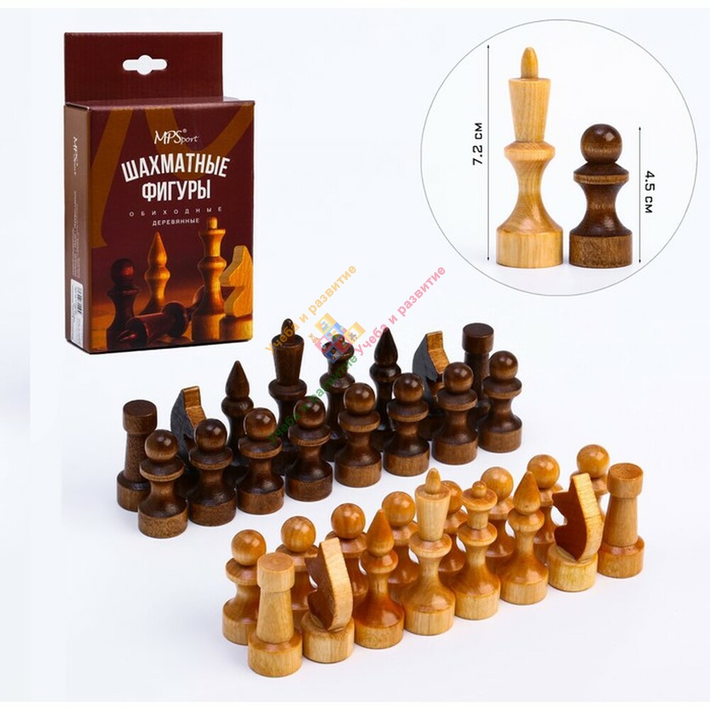 Шахматные фигуры обиходные, дерево, король 7.2 см, пешка 4.5 см