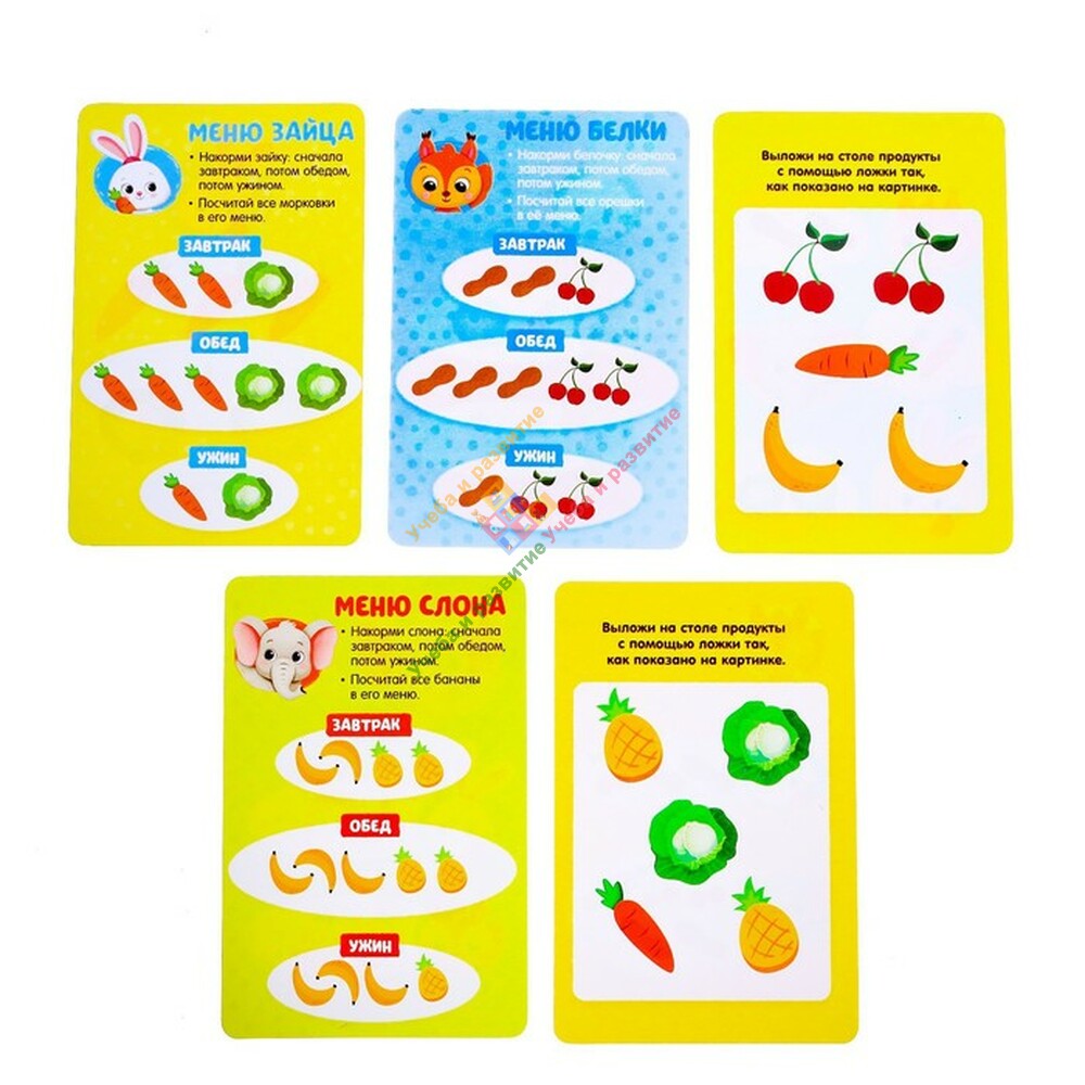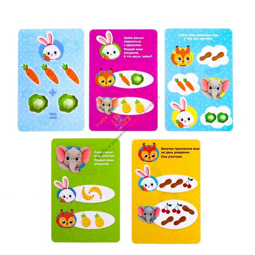 - Используйте для игры карточки с заданиями, обучайте ребёнка счёту, развивайте его мышление!