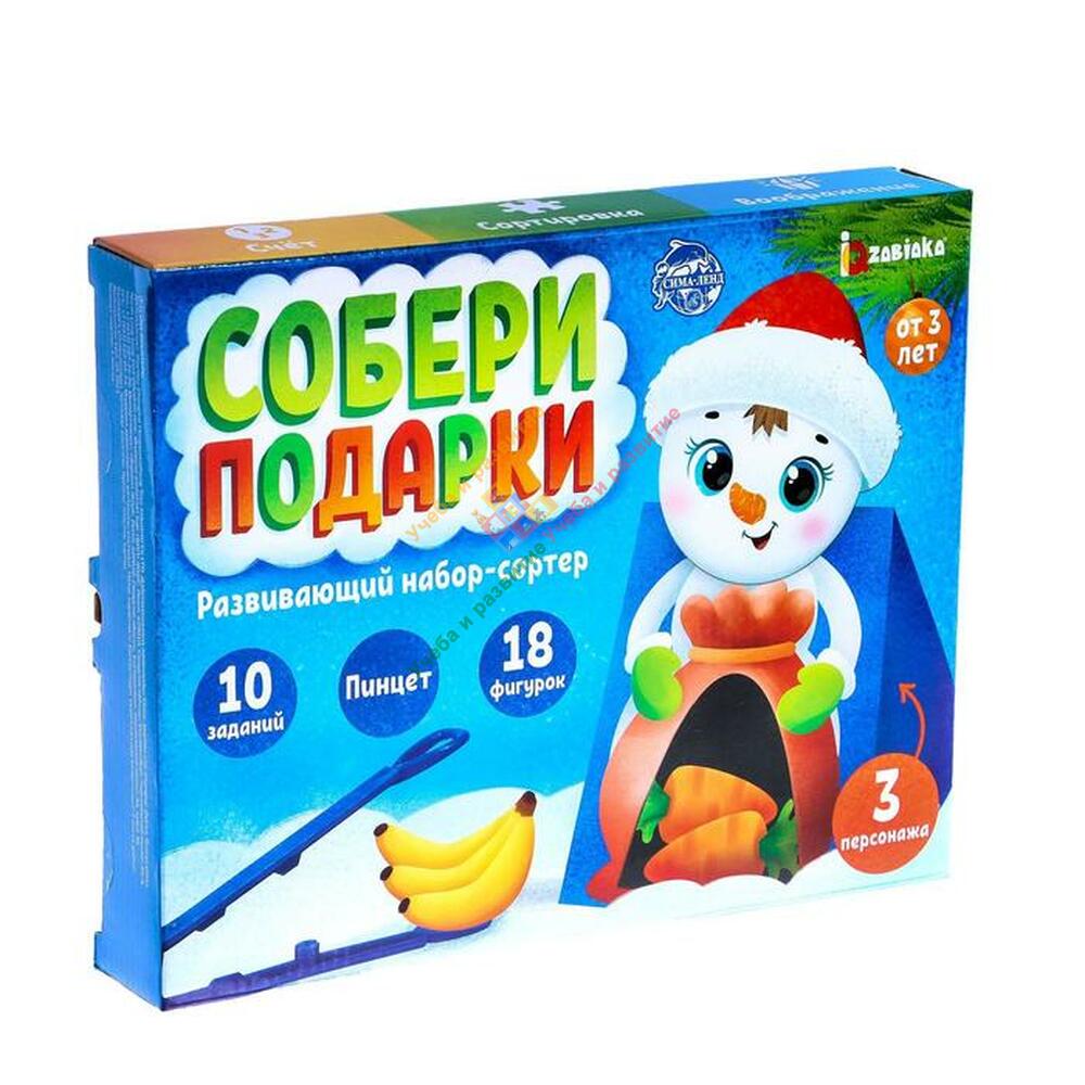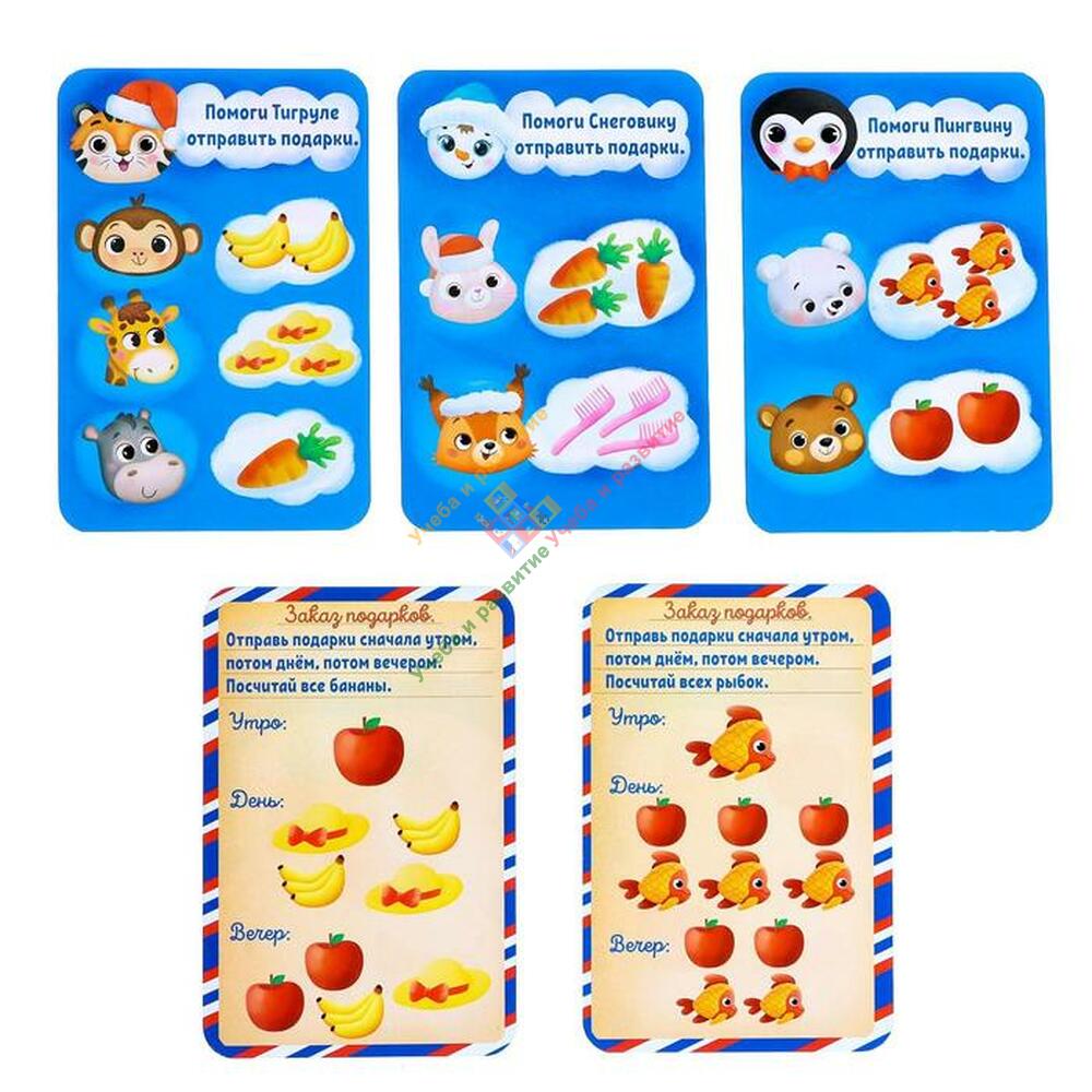 С помощью пинцета малыш будет распределять подарки по нужным адресам. В процессе игры ребёнок выучит цвета и научится считать.