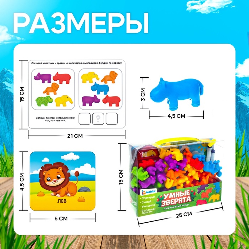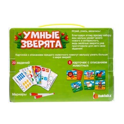В комплекте 20 заданий, 6 карточек с описанием животных и 2 маркера «пиши-стирай».