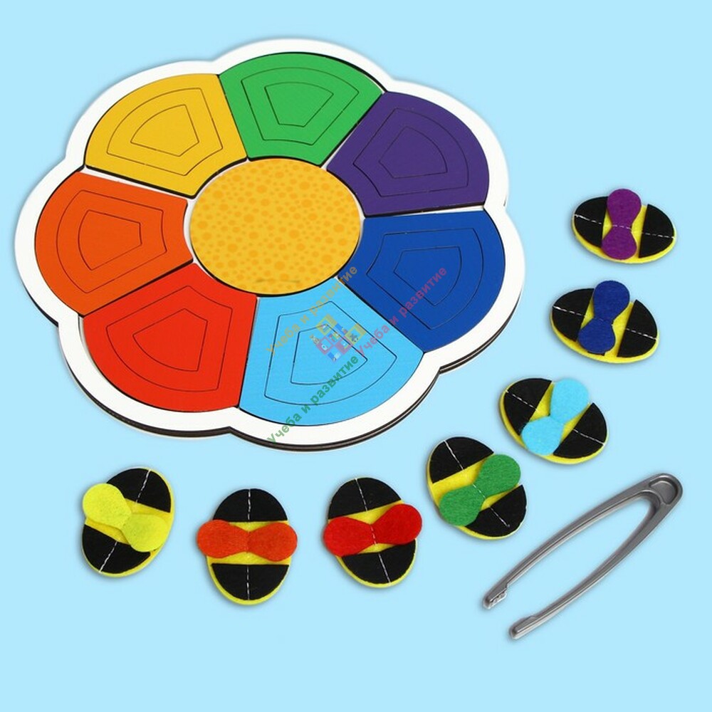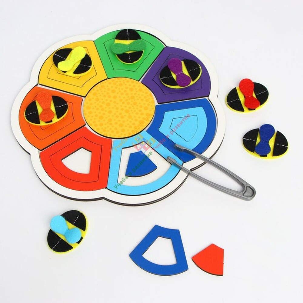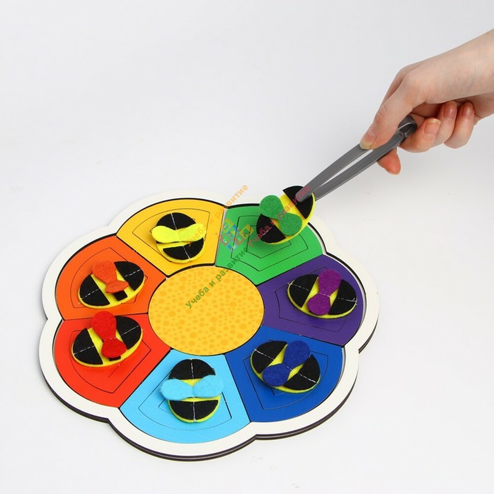 Распределите пчёлок на каждый лепесток в соответствии с цветом.