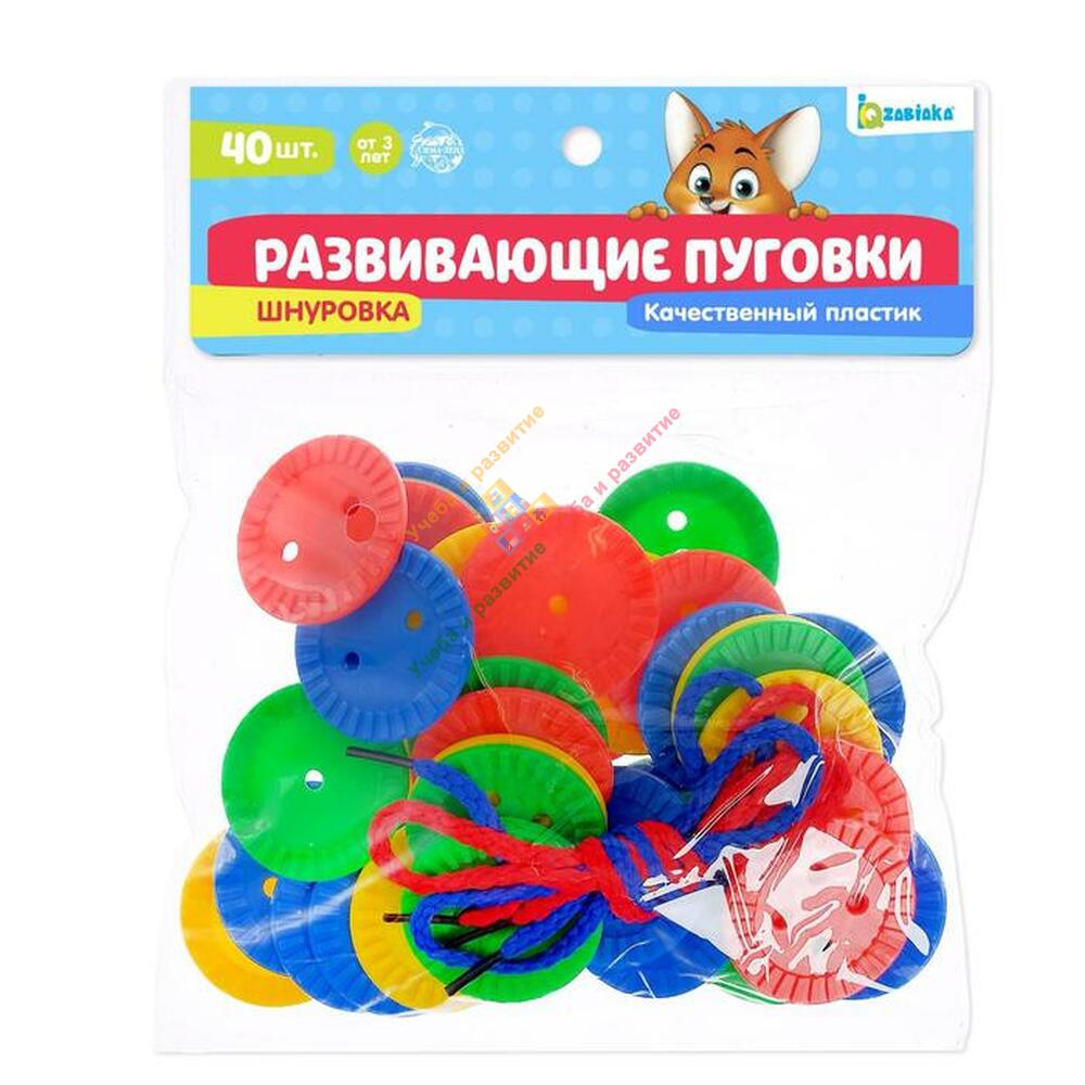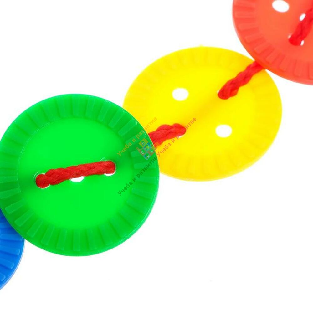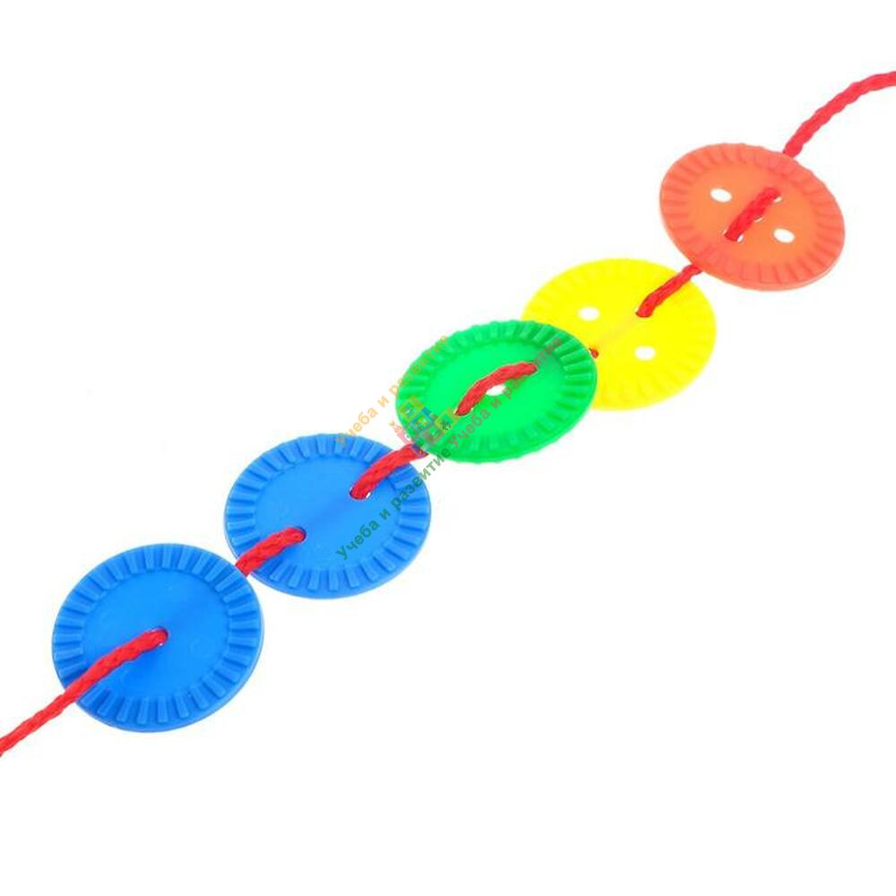 Шнуровки «Развивающие пуговки» — увлекательный способ развития мелкой моторики и усидчивости ребёнка. Задача малыша: нанизывать элементы на шнурок в определённой последовательности. Такая игра научит различать цвета и формы предметов.