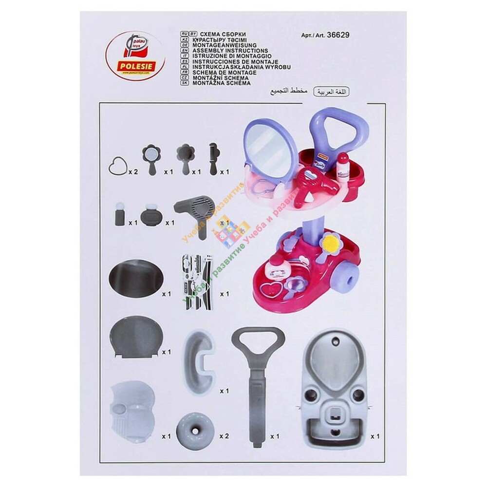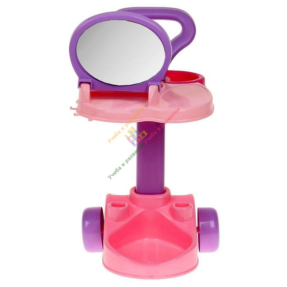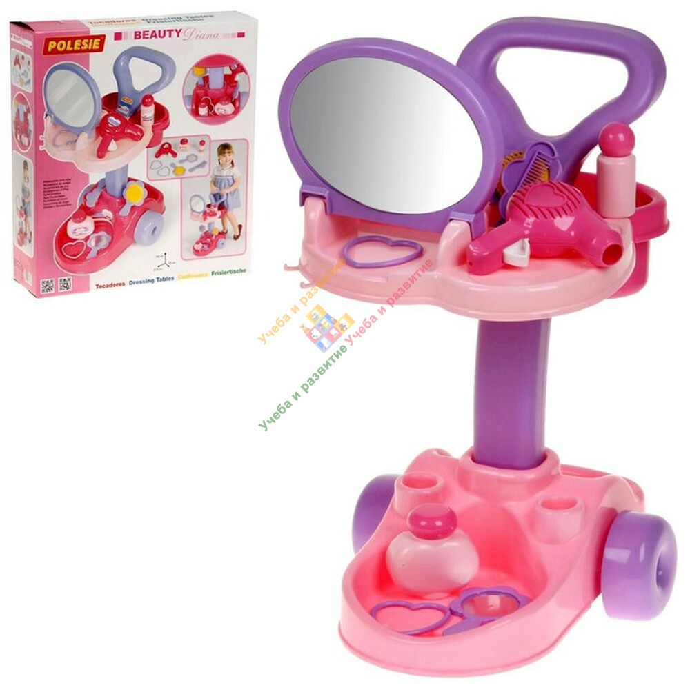 Если вашей дочурке нравится наводить красоту и создавать причёски, подарите ей собственный салон красоты! В игрушечном салоне «Диана» всё как у взрослых: большое круглое зеркало, розовый фен, 2 расчёски, разные флакончики и прочие принадлежности стилиста.