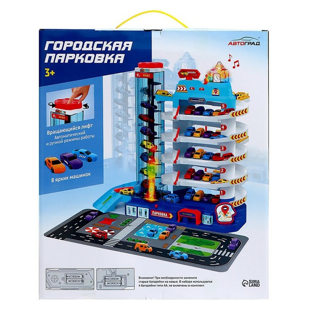 - Для работы световых, звуковых эффектов и автоматического режима лифта требуется 4 батарейки типоразмера АА (нет в комплекте).