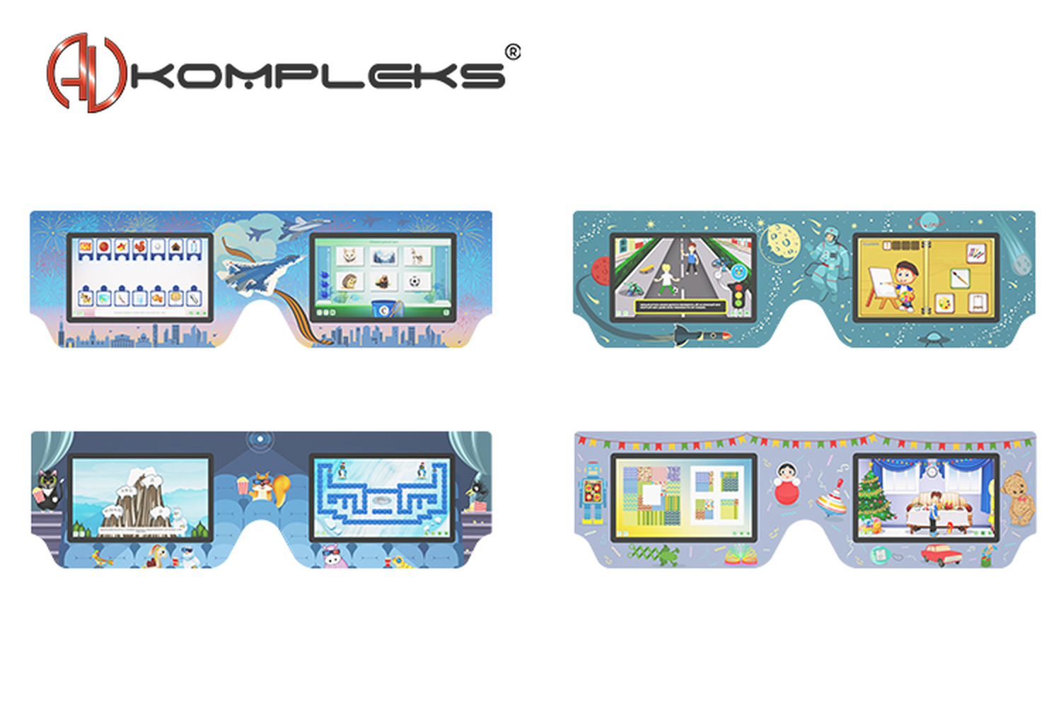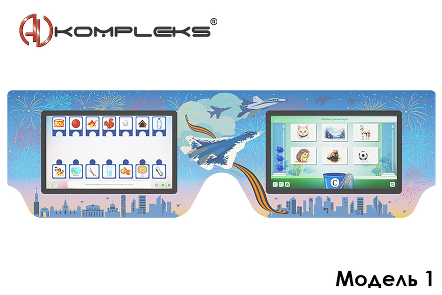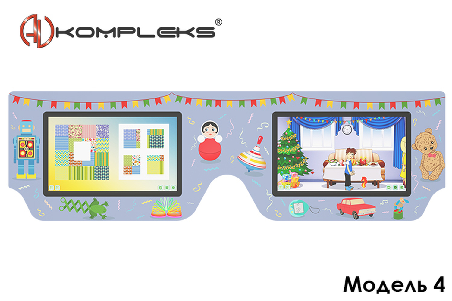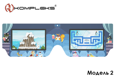 - Два интерактивных экрана диагональю 21,5 ″ на панели в виде стерео-очков – дети могут одновременно взаимодействовать с контентом, что способствует развитию командного духа и совместного обучения.