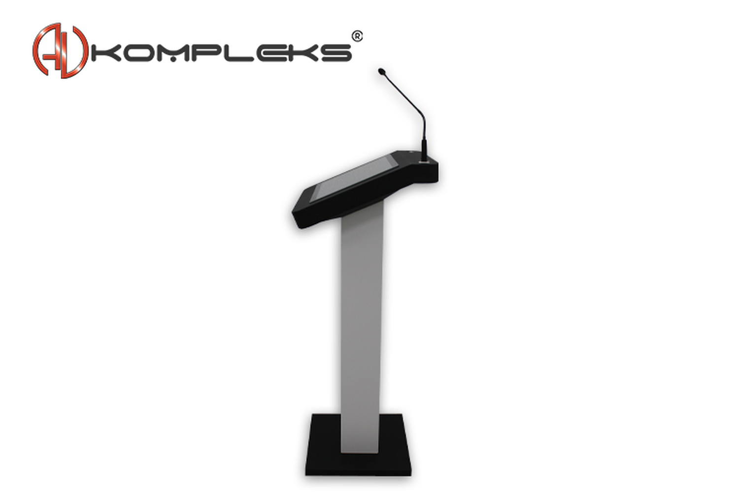 - Мультимедийная интерактивная трибуна «AVKompleks Aspirant 4» изготовлена из металла, что обеспечивают высокую прочность и устойчивость. Она может выдерживать значительные нагрузки и легко адаптируется к различным пространствам.