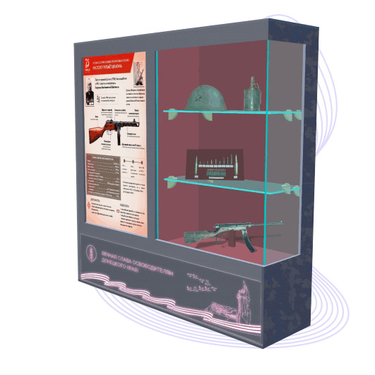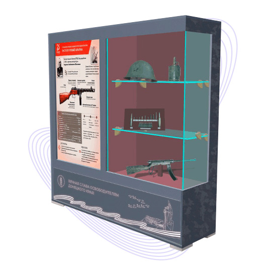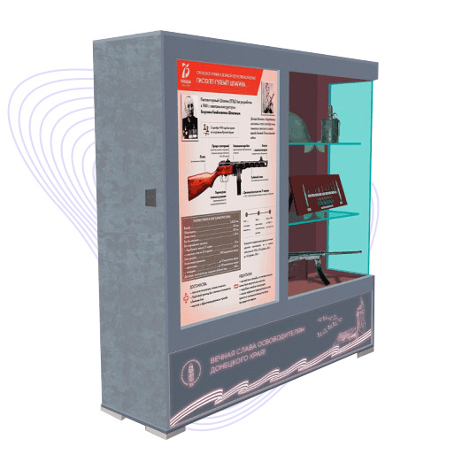 В нише интерактивной витрины располагаются экспонаты, а при помощи сенсорного экрана и интерактивного контента посетители могут получить информацию по всей экспозиции.