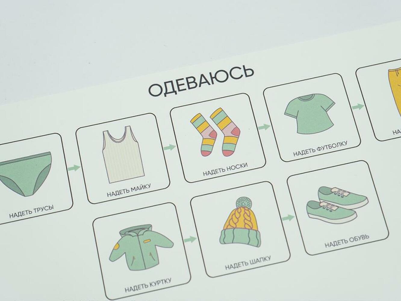 Комплект листов с картинками, позволяющими визуализировать для детей с РАС (ЗПР, УО, синдромом Дауна) последовательность ключевых событий в жизни и структурировать распорядок дня. Зрительное восприятие у детей с РАС развито лучше, чем аудиальное, поэтому визуальные опоры позволяют эффективно обучить ребёнка достижению целевого результата и убрать нежелательное поведение. Включает в себя модуль «сначала-потом», комплекты «Поведенческая цепочка», «Последовательность событий», «Таблицы выбора».