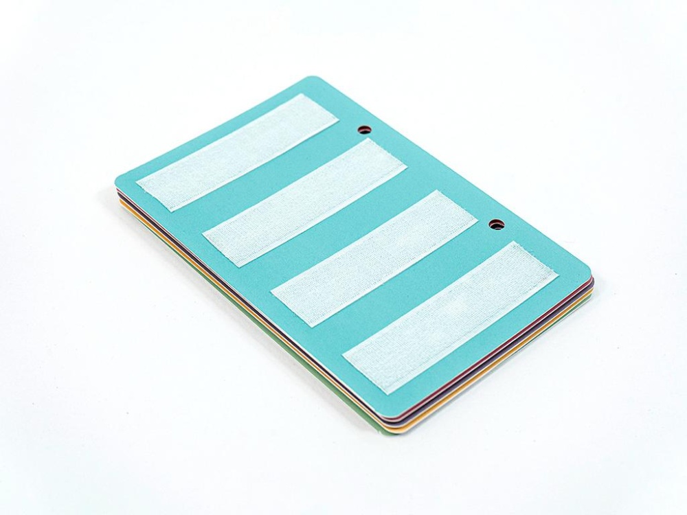 • На странице 4 полосы ленты-липучки, вмещается до 12 карточек
