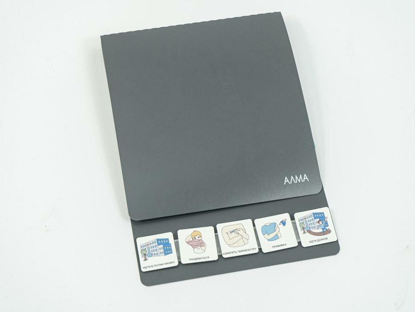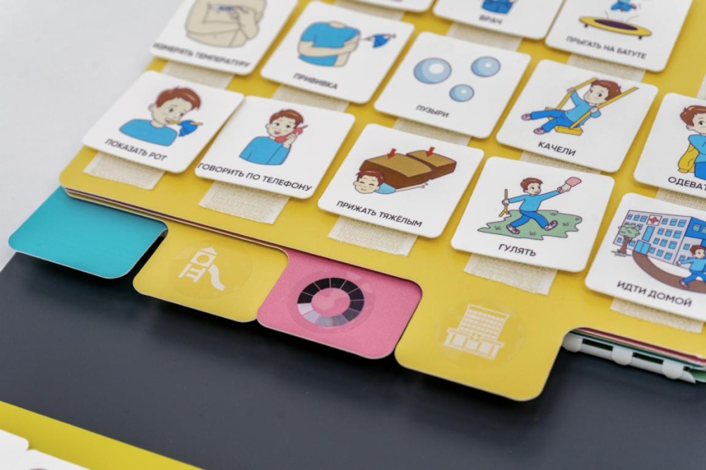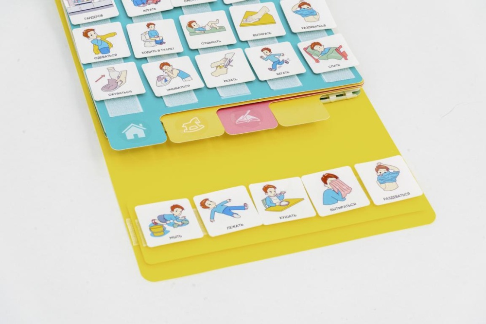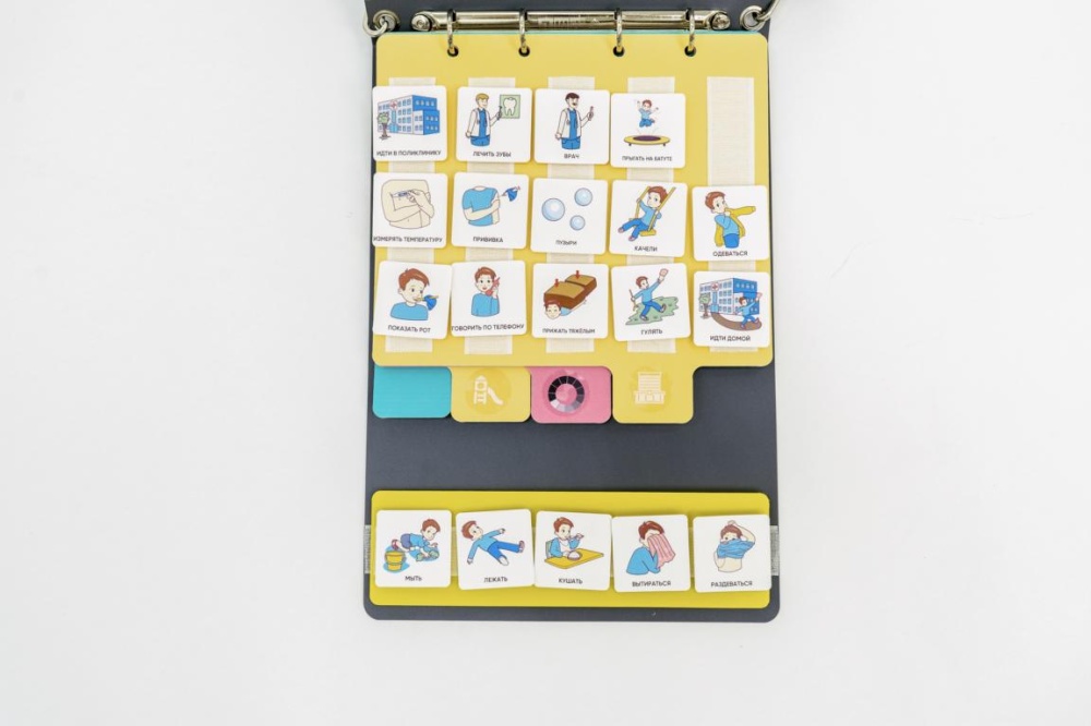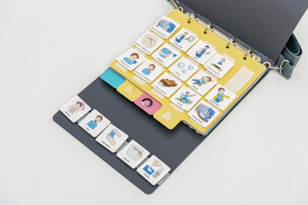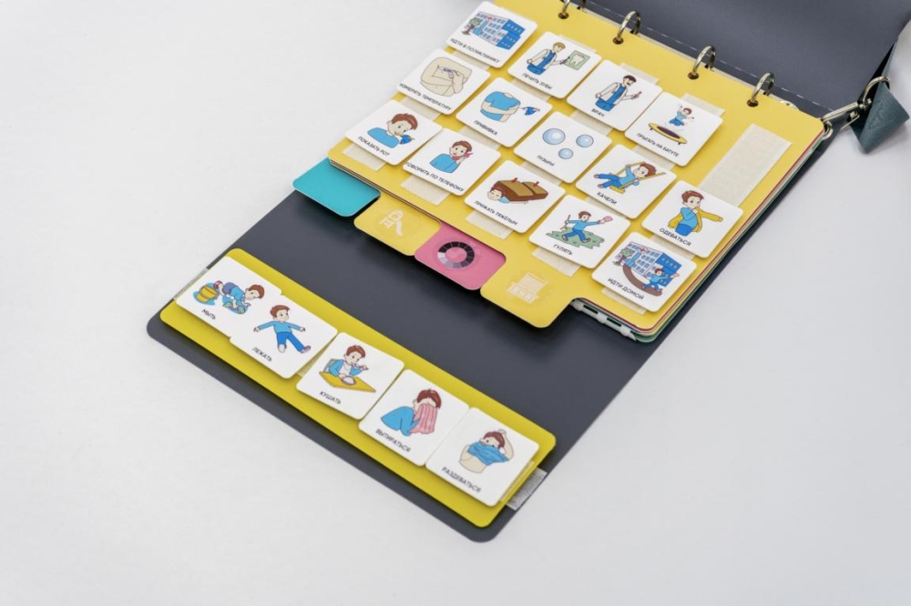 Инструмент для альтернативной/дополнительной коммуникации у детей, имеющих проблемы с речью (в том числе, РАС). Это пластиковая папка на кольцах, куда вкладываются жёсткие листы с рядами ленты-липучки велкро. На ленту приклеиваются карточки PECS/ПЕКС, служащие средством обмена информации между неговорящим ребёнком и взрослым.