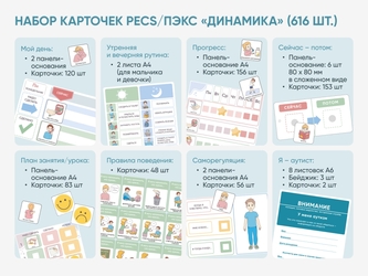 В комплектацию набора входят карточки ПЭКС и визуализации на разные тематики: