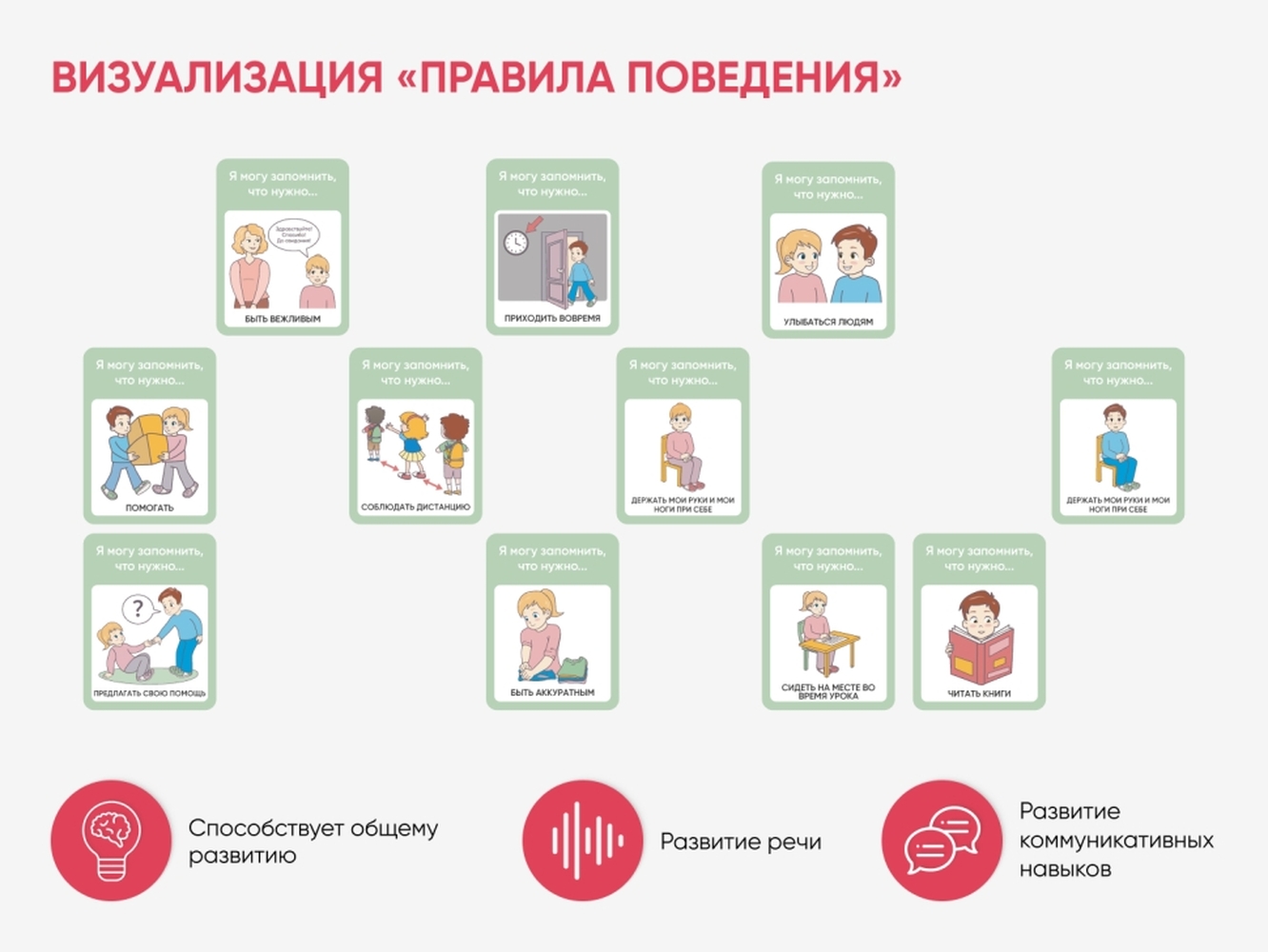 Визуальное подкрепление правил поведения помогает лучше понять и запомнить то, что ожидается от человека. Для детей с трудностями обучения и РАС важно, чтобы правила содержали то, что нужно делать, а не то, чего не стоит делать, например: «говорить по очереди» (вместо «не перебивать»). Вариант для мальчика и для девочки.