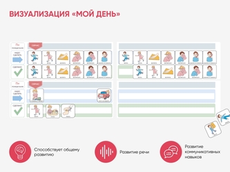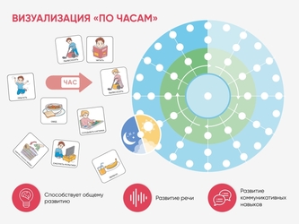 Визуализация для демонстрации последовательности событий в течении дня. Помогает снять напряжение, поддерживает мотивацию ребенка.