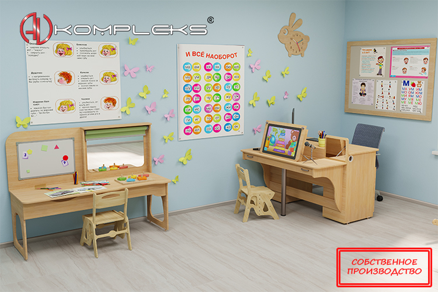- Мебельный стол логопеда – обеспечивает максимальный комфорт и удобство в работе специалиста. Стол устойчив, выполнен из безопасных материалов, что особенно важно при работе с маленькими детьми.