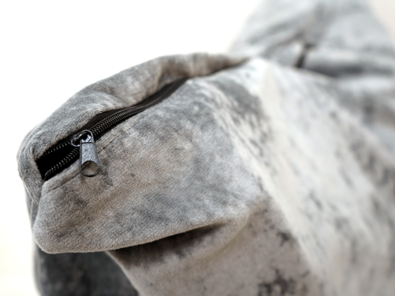 Внешняя наволочка сделана из фактурного материала, взаимодействие с которой стимулирует развитие сенсорной системы. Сама подушка набита кусками поролона разных форм и размеров, который удобно размещен во внутренней, технической наволочке. Такое решение позволяет с легкостью поддерживать чистоту — внешнюю наволочку можно снять для стирки без потери формы подушки.