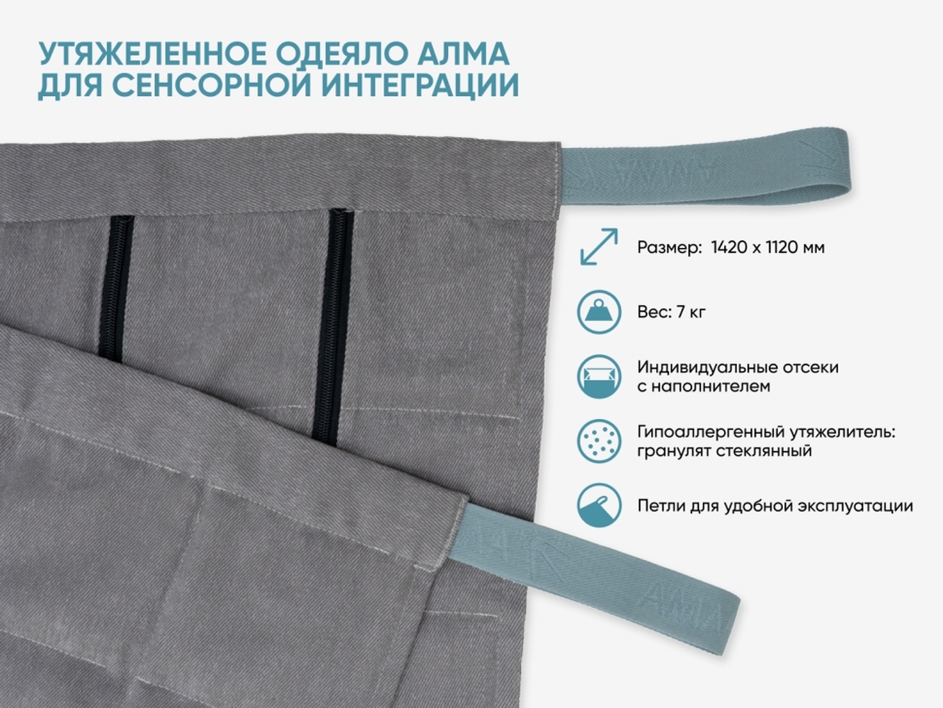 Утяжеленное одеяло используется для создания глубокого тактильного давления и стимуляции проприоцепции у детей с РАС, СДВГ, ДЦП и нарушениями сенсорной чувствительности.