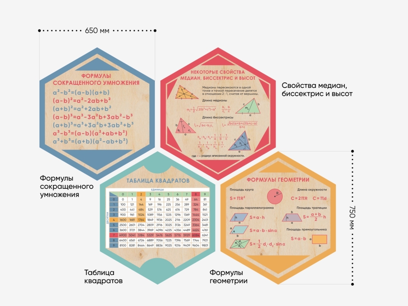 Образовательные панели для оформления стен школьных учреждений. Выполняют две функции: декор и соответствующее предмету обучение.