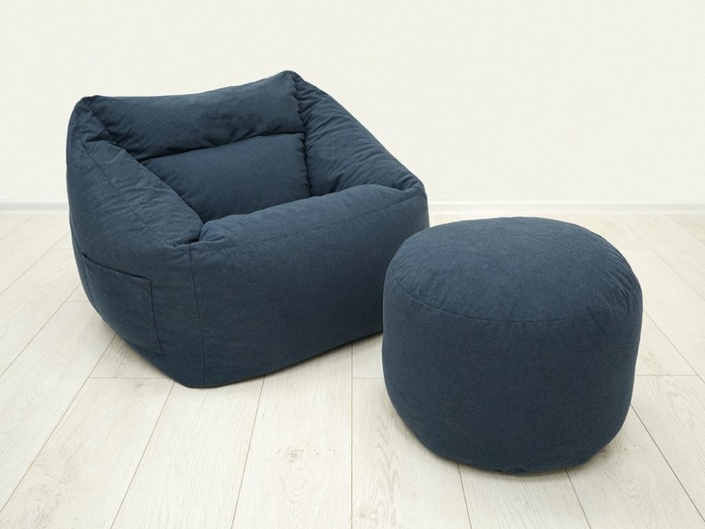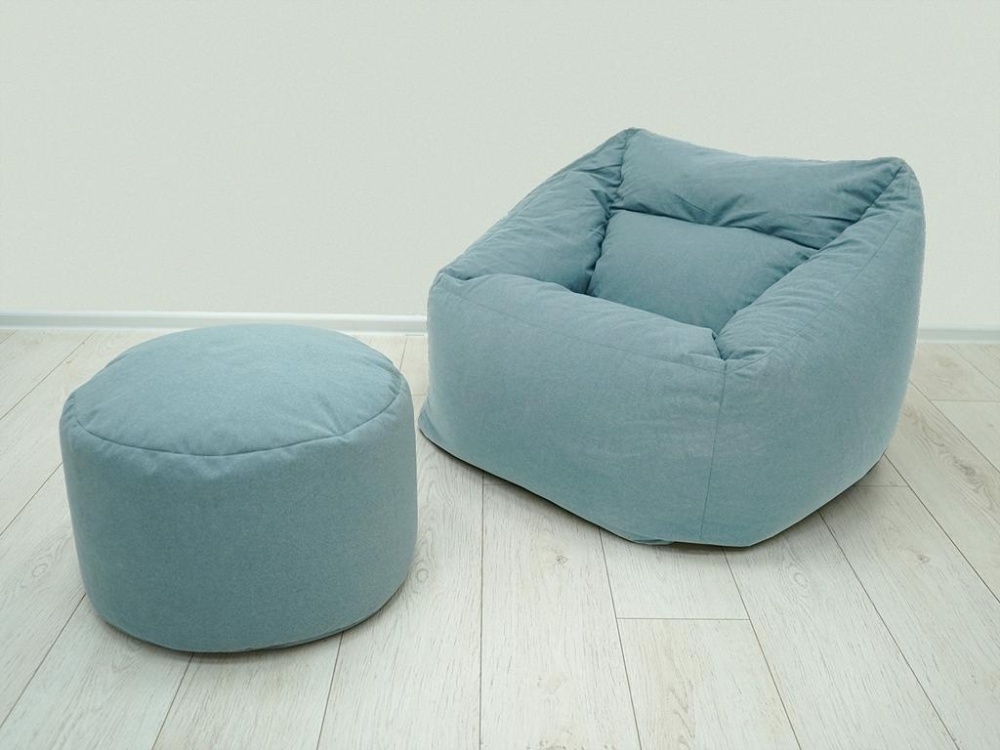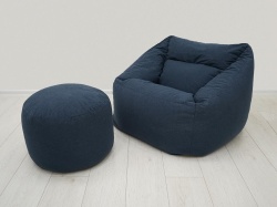 Комплект мягкой бескаркасной мебели из кресла-пуфа и пуфика, который можно использовать в качестве удобной подставки для ног или как самостоятельный предмет мебели.