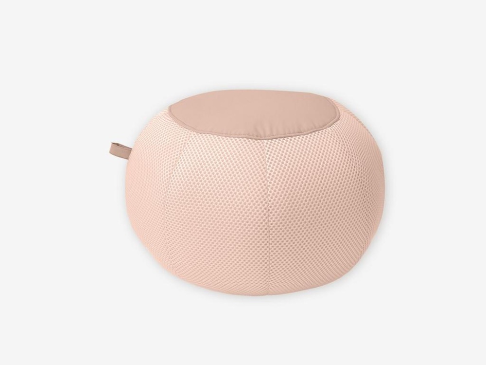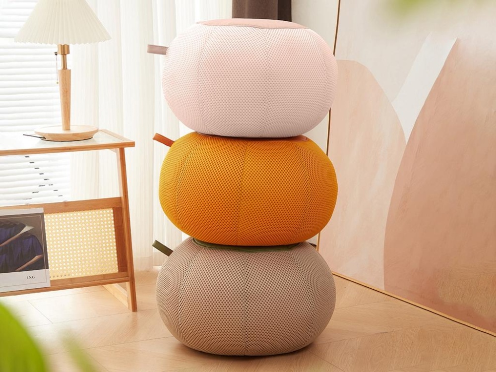 Малый вес пуфа позволяет с легкостью его переносить с одной точки на другую, что становится под силу даже ребенку. Отсутствие твердых поверхностей и углов обеспечивает безопасность взаимодействие детей с пуфами. Конструкция дополнена ручкой-петелькой для удобства транспортировки и вертикального хранения. На нижней части находится потайная молния для контроля количества наполнителя.