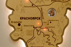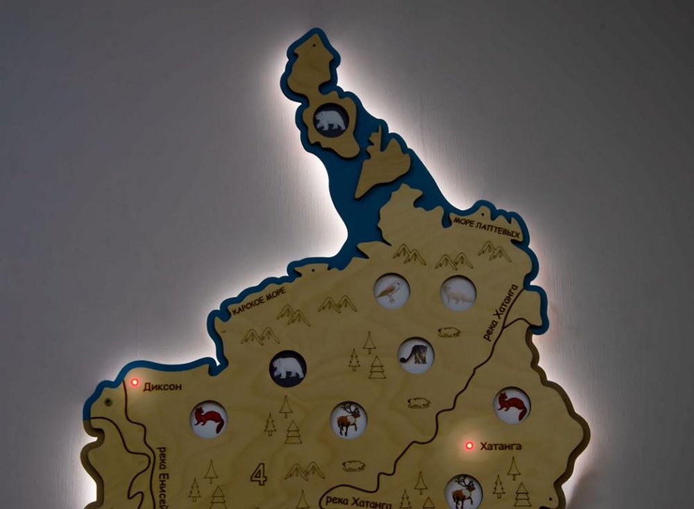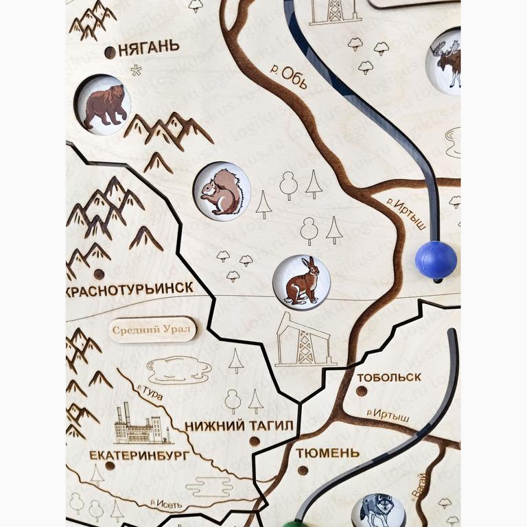 Декоративно-развивающая панель «Карта региона» для оформления интерьера. Знакомит дошкольников старшего возраста с флорой и фауной родного края, прививает любовь к своему региону.