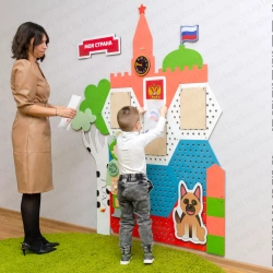 Комплект перфорированных настенных панелей с декором для оформления патриотического уголка в дошкольном учреждении.