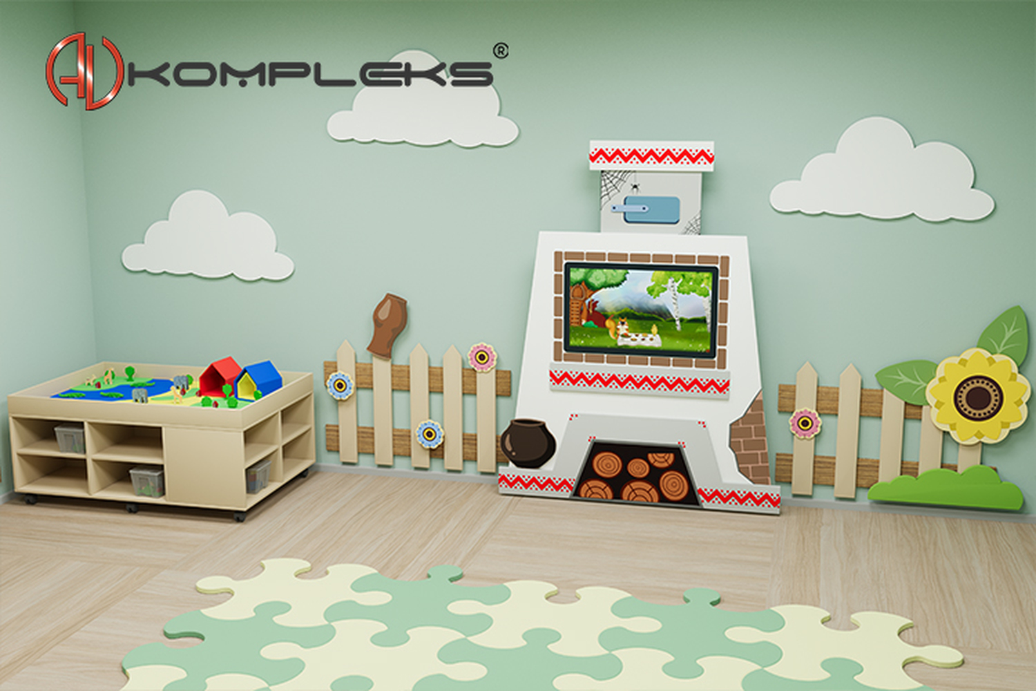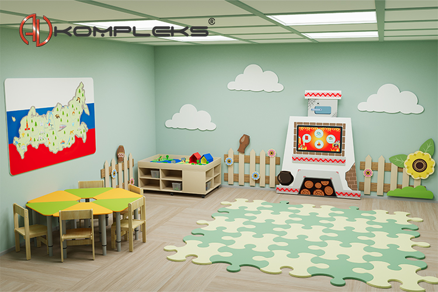 Основным элементом кабинета выступает профессиональный интерактивный комплекс «AVKompleks Multi 38» в форме традиционной русской печи, который привлекает внимание детей, создает уютную, аутентичную атмосферу. Этот комплекс предоставляет возможность интерактивного обучения, позволяя детям изучать казачьи традиции и обычаи через игры и мультимедийные материалы.