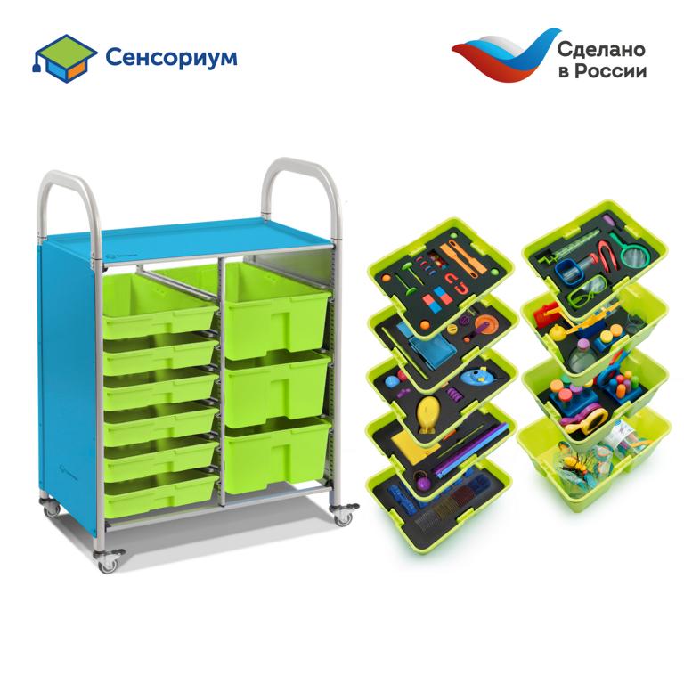 Наличие двойной мобильной системы хранения «Сенсориум» зависит от варианта комплекта. Модули упакованы в контейнеры.