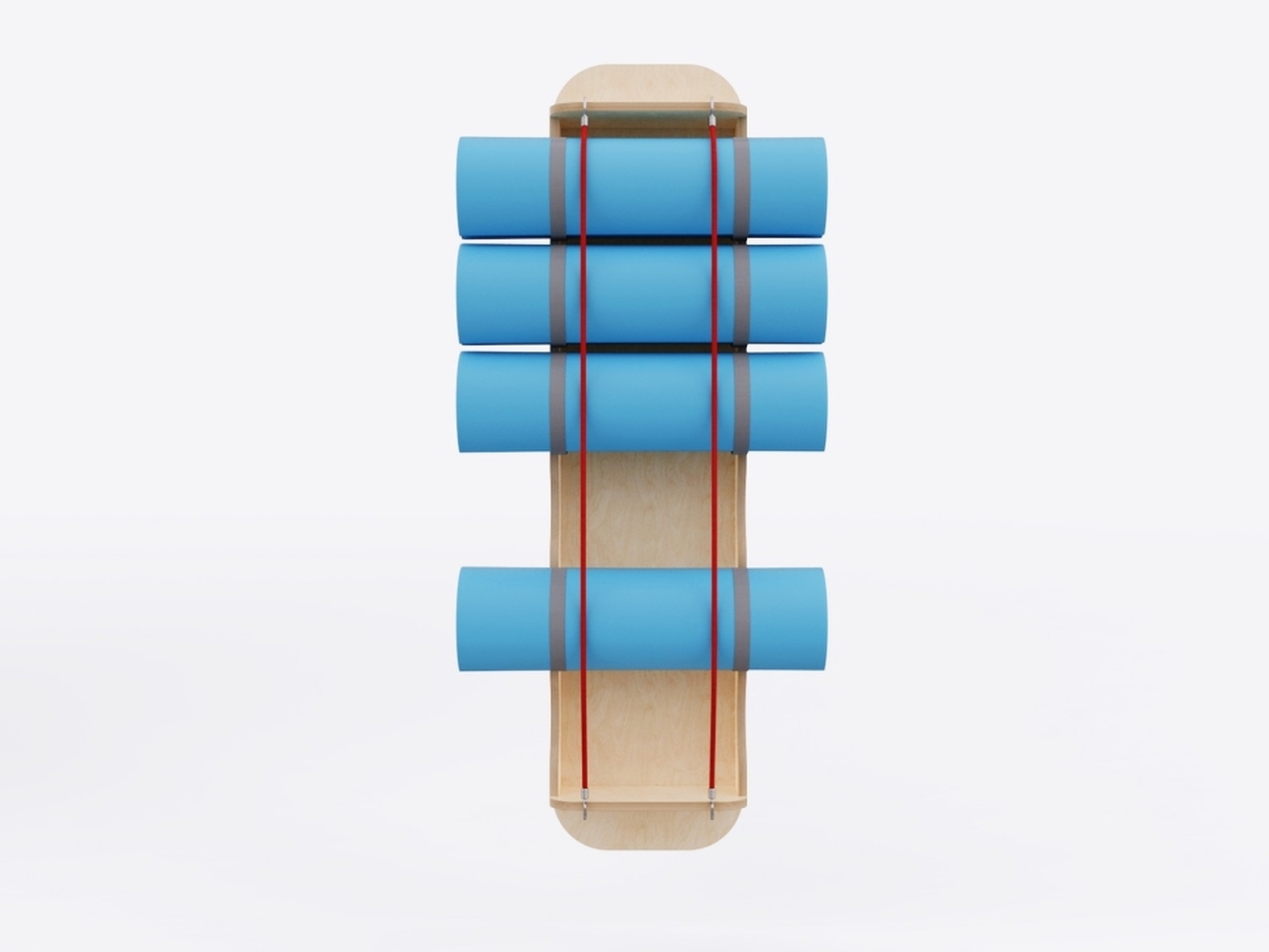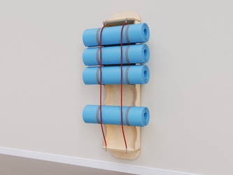 Система для хранения гимнастических ковриков. Экономит место в физкультурном зале, расширяет рабочее пространство на полу за счет крепления к стене. Вертикальные резинки позволяют с легкостью доставать коврики и убирать их обратно.
