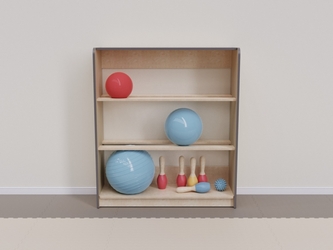 Стеллаж выполнен из высококачественных и прочных материалов, безопасных для использования детьми. Соответствует актуальным ГОСТам на детскую мебель и инвентарь для спортивных залов, требованиям СанПиН и пожарной безопасности, рекомендациям ФОП ДО по созданию развивающей среды для детей. Гладкие поверхности просты в уходе: достаточно влажной уборки для поддержания высокого уровня гигиены.