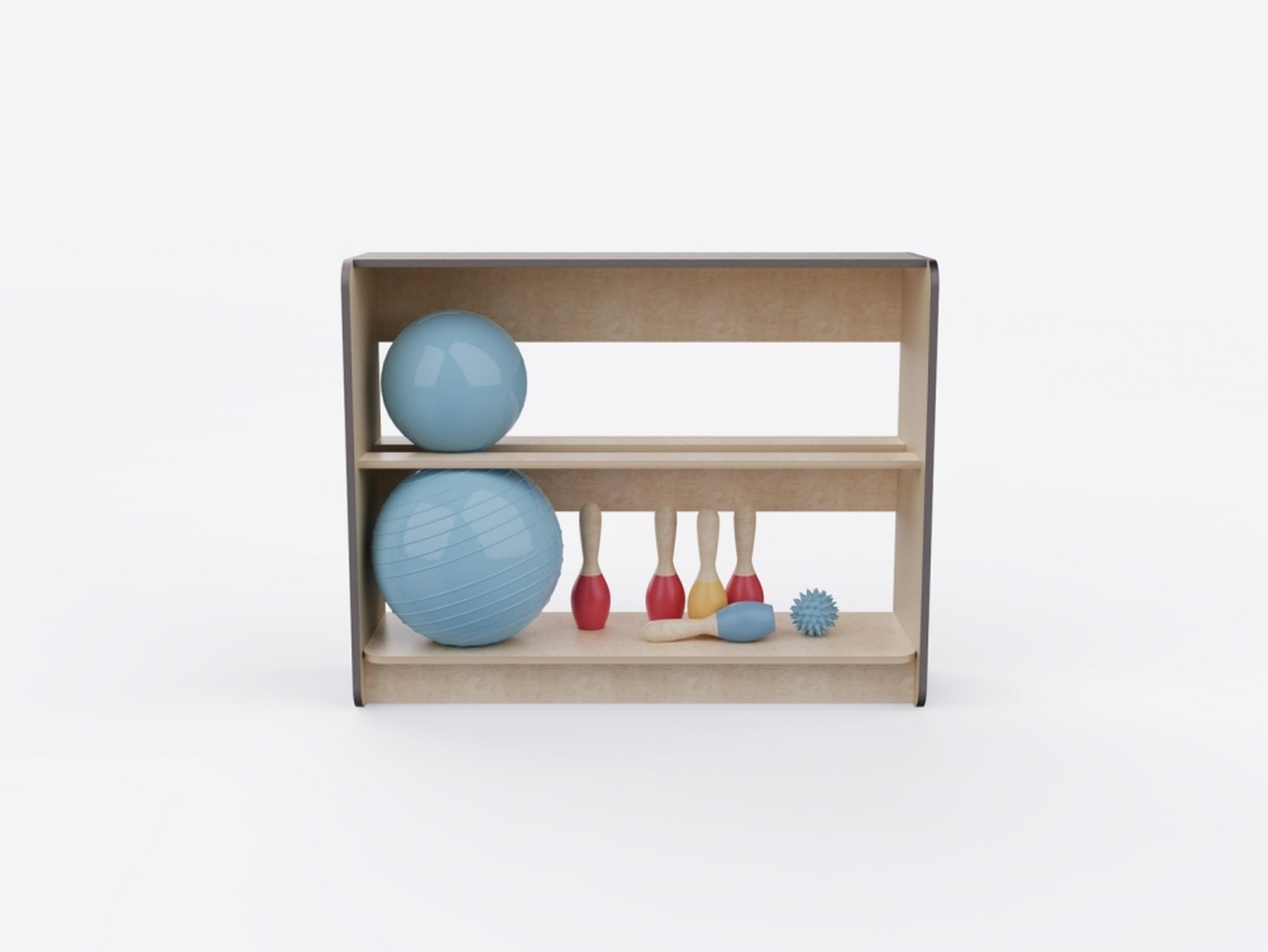 Стеллаж выполнен из высококачественных и прочных материалов, безопасных для использования детьми. Соответствует актуальным ГОСТам на детскую мебель и инвентарь для спортивных залов, требованиям СанПиН и пожарной безопасности, рекомендациям ФОП ДО по созданию развивающей среды для детей. Гладкие поверхности просты в уходе: достаточно влажной уборки для поддержания высокого уровня гигиены.