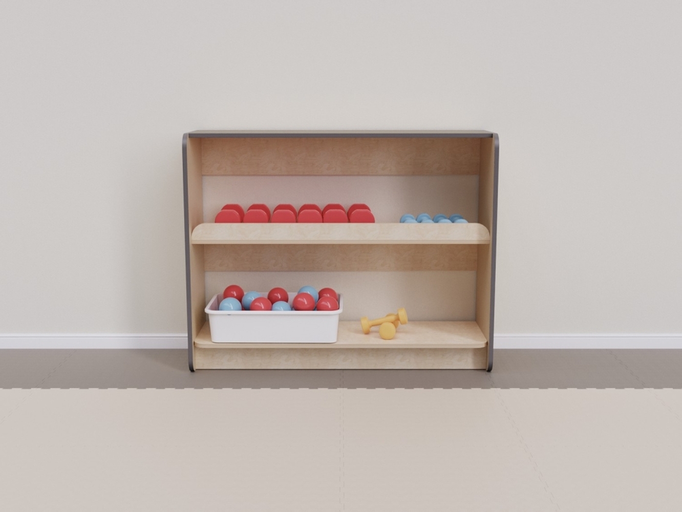 Стеллаж выполнен из высококачественных и прочных материалов, безопасных для использования детьми. Соответствует актуальным ГОСТам на детскую мебель и инвентарь для спортивных залов, требованиям СанПиН и пожарной безопасности, рекомендациям ФОП ДО по созданию развивающей среды для детей. Гладкие поверхности просты в уходе: достаточно влажной уборки для поддержания высокого уровня гигиены.